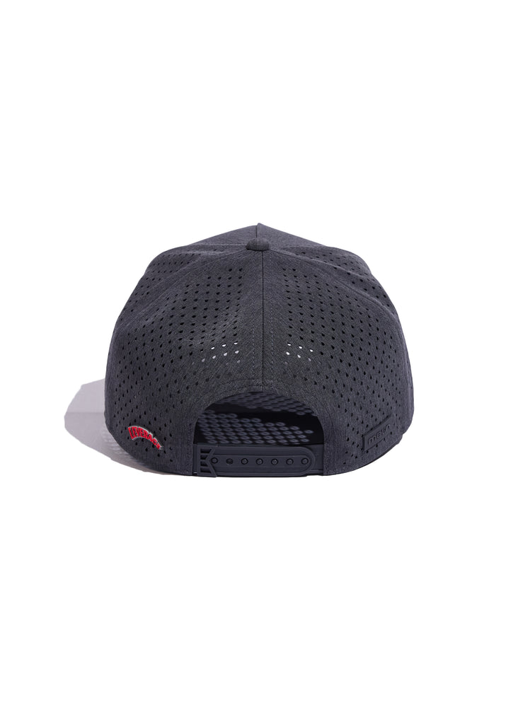 - Grey performance snapback with laser-perforated side and back panels